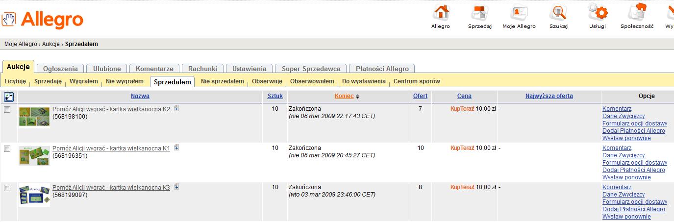 Aukcje dla Alicji na Allegro